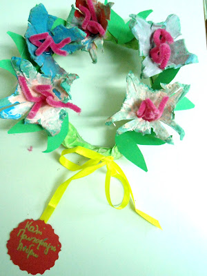 2.ο σκελετός του στεφανιού είναι από εφημερίδα και χαρτοταινία